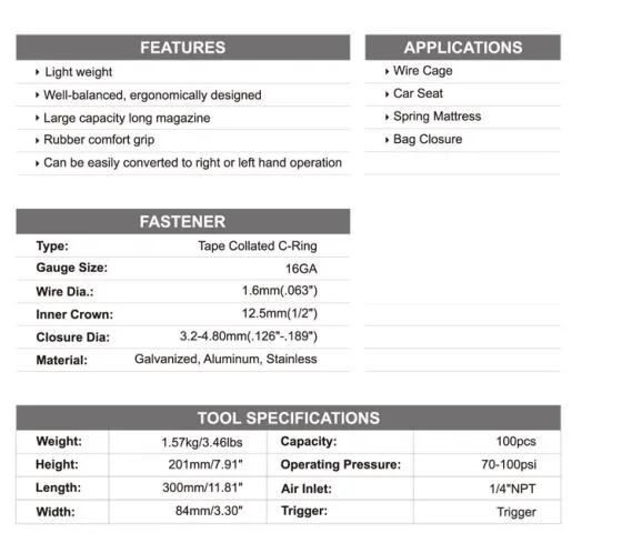 Product Name: SC760C Pneumatic C-Ring Gun, Air Nail Gun , Hog Ring Plier , C-Ring Nailer Original Authentic