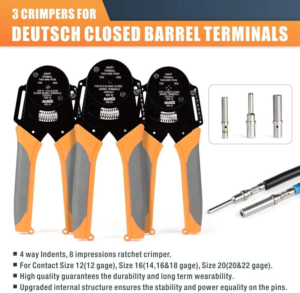 Product Name: IWISS Automotive Wiring Crimping Tool Kit For Deutsch Open&closed Barrel Terminals,Weather Pack Terminals-12 PCS Included