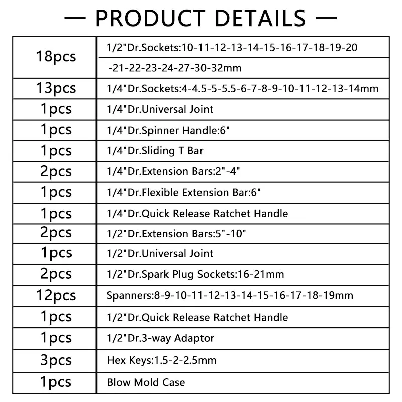 Product Name: 1/4 1/2 61pcs Socket Set Hand Tools For Home Tool Set Househould Tool Kits Screwdriver Set Wrench Spinner Pliers YITOK