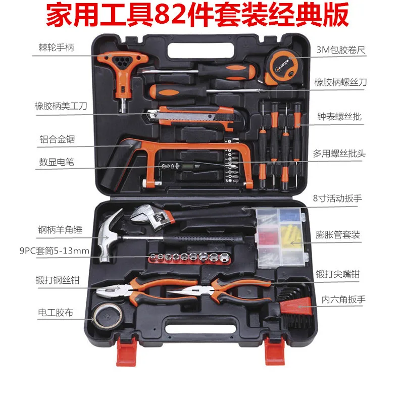 Special Offer 82pcs Electrician Hand Tool Set Kit Household Tool Kit Saw Screwdriver Hammer Tape Measure Wrench Plier Discount 0% Today!